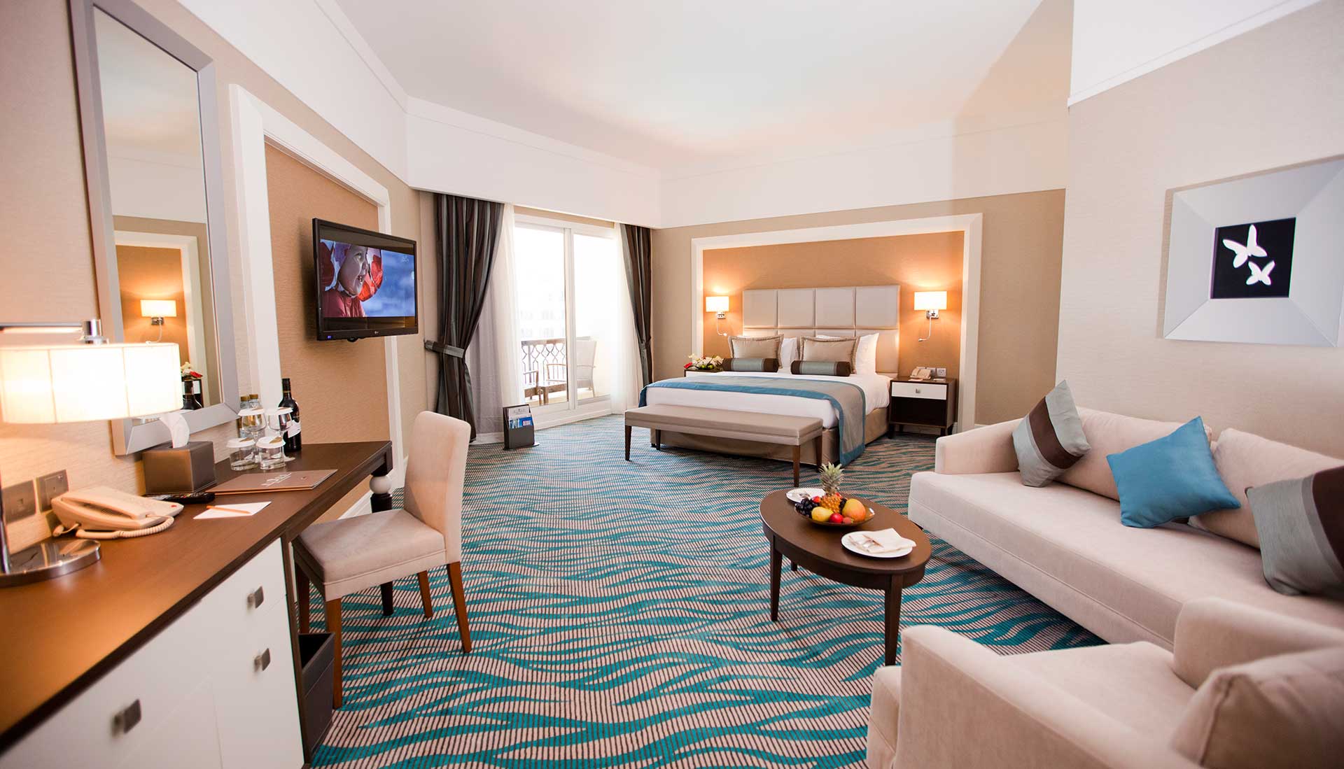 Интерьеры номеров отеля Rixos Bab Al Bahr выдержаны в нежных светлых тонах и украшены прекрасными работами турецких мастеров. Комнаты обставлены мебелью классического дизайна, а из окон открывается потрясающий вид на сады отеля или Персидский залив.